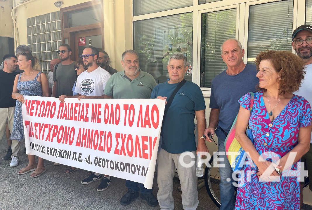 Σε παράσταση διαμαρτυρίας προχώρησαν σήμερα εκπαιδευτικοί στο Ηράκλειο, με φόντο τις συγχωνεύσεις σχολικών τμημάτων στο νησί.