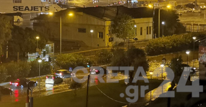 Το ρεύμα από τον Οργανισμό Λιμένος Ηρακλείου προς Αλικαρνασσό πλημμύρισε, με την κίνηση να διεξάγεται με δυσκολία για αρκετή ώρα.