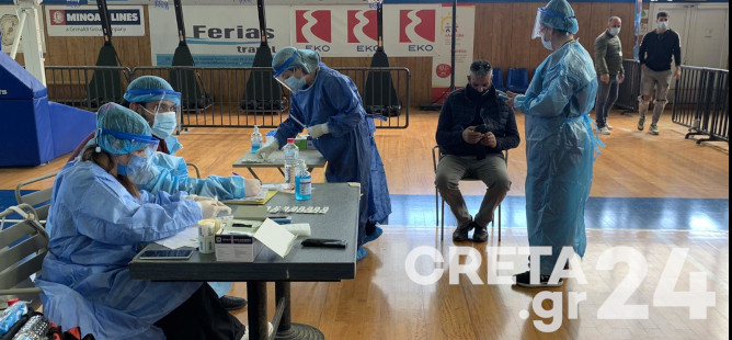 Κινητές Μονάδες του ΕΟΔΥ πραγματοποιούν από το πρωί rapid test στο κλειστό γυμναστήριο Μελίνα Μερκούρη στην Αλικαρνασσό.