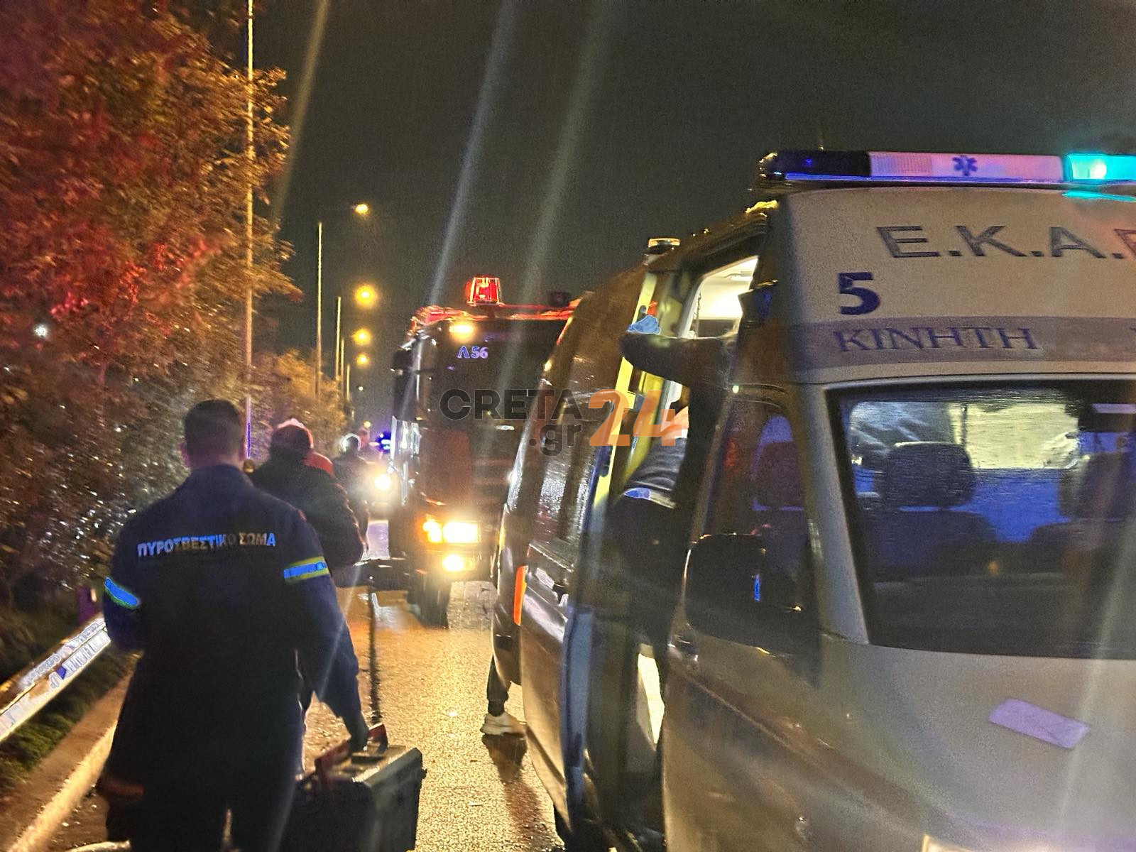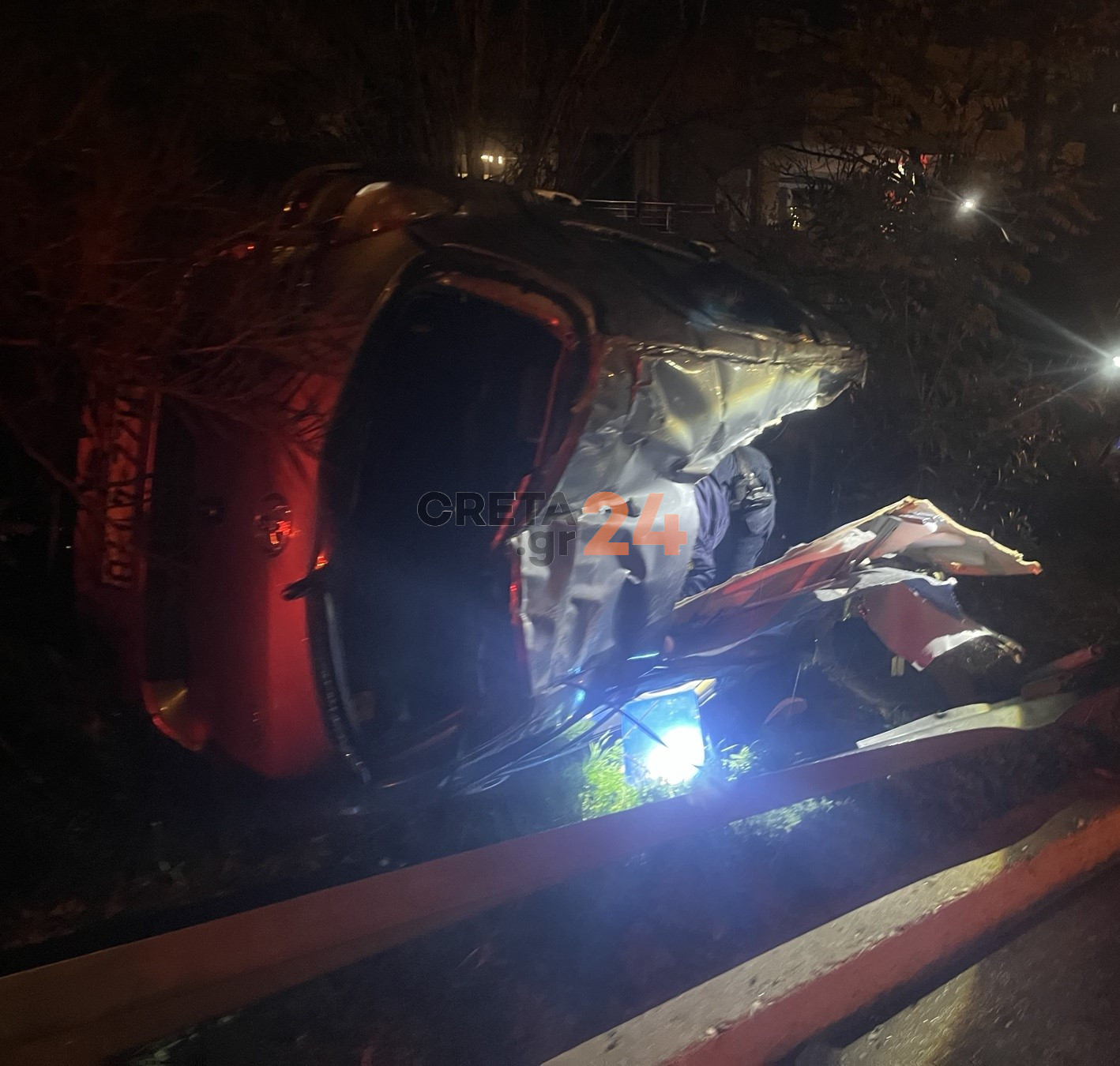 Ο οδηγός σε κατάσταση σοκ μεταφέρθηκε με ασθενοφόρο του ΕΚΑΒ στο Βενιζέλειο Νοσοκομείο Ηρακλείου, με ελαφρά τραύματα, όπως και η γυναίκα που ήταν συνοδηγός.