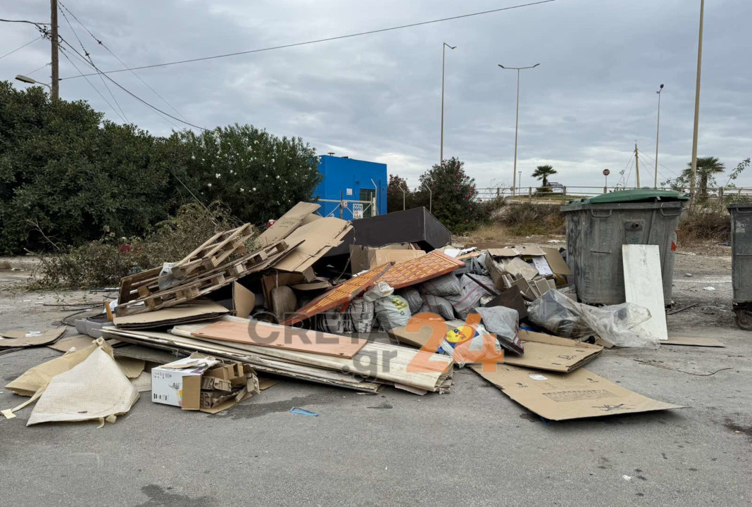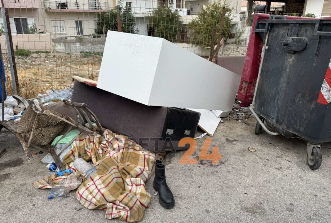Ογκώδη αντικείμενα και σκουπίδια στοιβαγμένα δίπλα στους κάδους, σε διάφορα σημεία συνθέτουν ένα αποκρουστικό σκηνικό.
