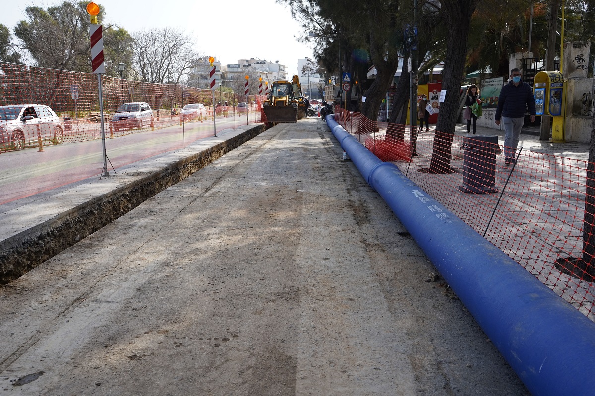 Στη συνέχεια έγινε αυτοψία στις εργασίες που πραγματοποιούνται στην οδό Ανωγειαννάκη, στην περιοχή της Ηλιούπολης. Πρόκειται για το έργο που χρηματοδοτείται από το Πρόγραμμα Δημοσίων Επενδύσεων, με ποσό σύμβασης 181.071,94 €, και αφορά στην ενίσχυση της τροφοδοσίας της δεξαμενής στην περιοχή της Φορτέτσας.