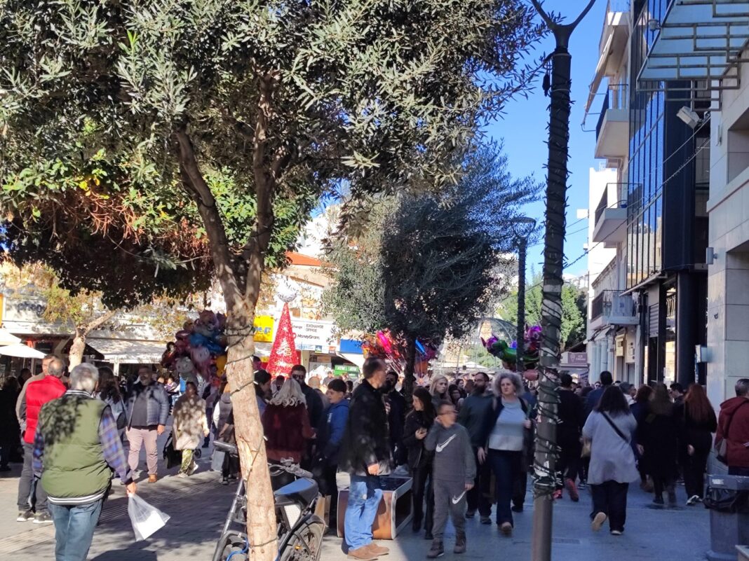 Σε εορταστικούς ρυθμούς «κινείται» η αγορά του Ηρακλείου, με τα καταστήματα να λειτουργούν σήμερα προπαραμονή των Χριστουγέννων για 12 ώρες.