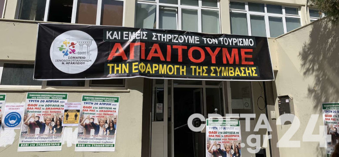 Το πρωί υπήρξε συγκέντρωση των εργαζομένων στον τουρισμό και τον επισιτισμό στο Εργατικό Κέντρο Ηρακλείου και στη συνέχεια με πορεία θα καταλήξουν στην πλατεία Ελευθερίας όπου θα επιδώσουν ψήφισμα στον περιφερειάρχη.