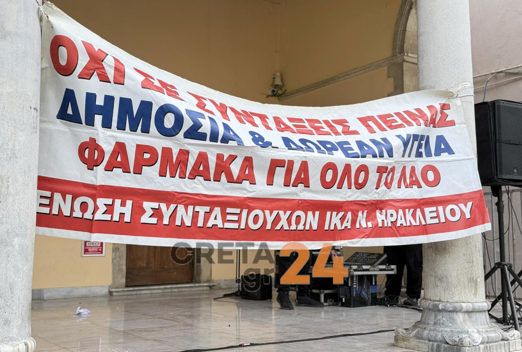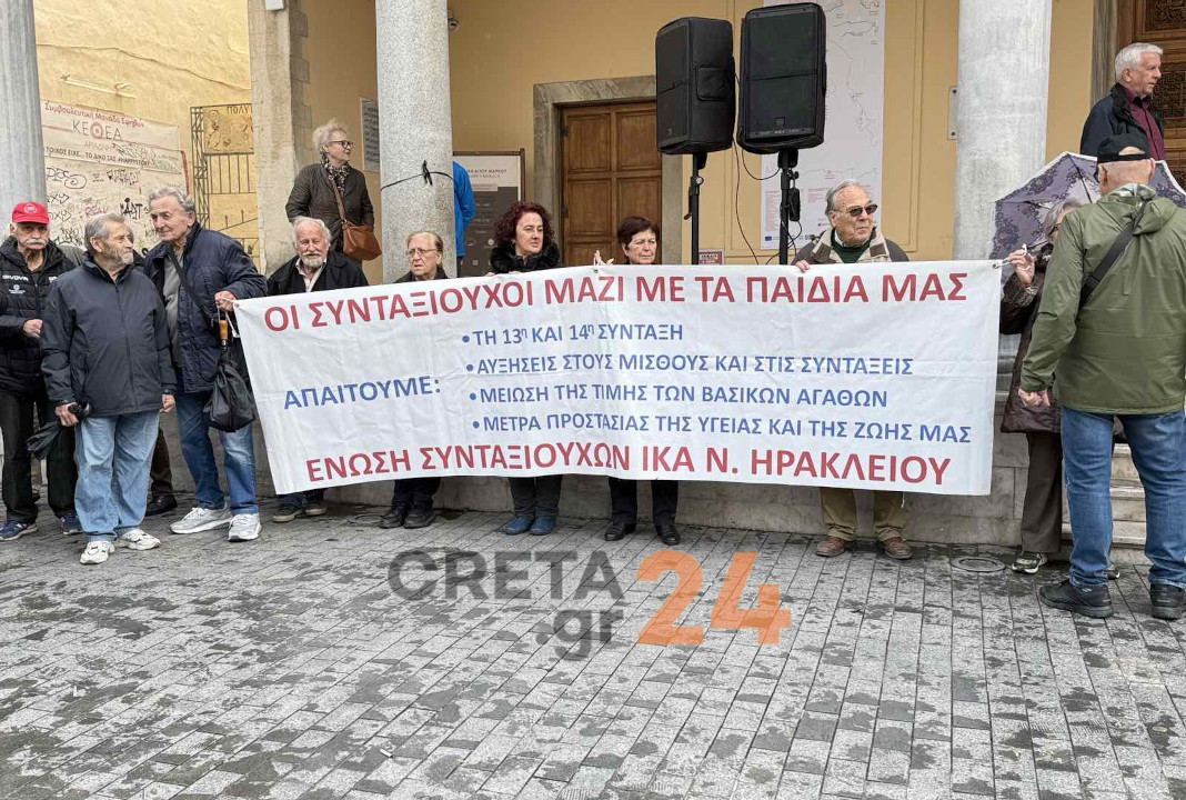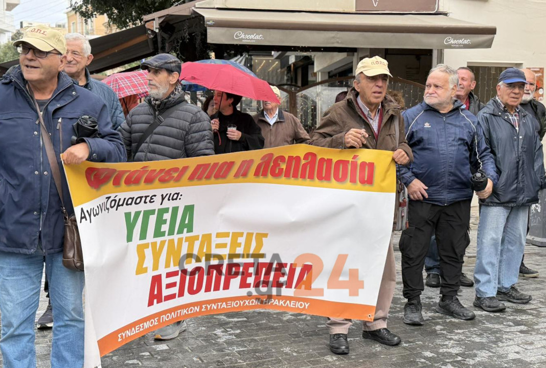 Συγκέντρωση διαμαρτυρίας πραγματοποίησαν το πρωί της Παρασκευής ενώσεις συνταξιούχων από όλη της Κρήτη, στο Ηράκλειο.