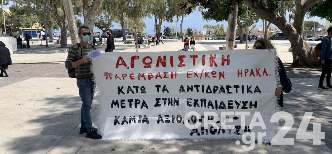 Οι δάσκαλοι του Ηρακλείου συμμετέχουν σήμερα στο πανεκπαιδευτικό συλλαλητήριο στο κέντρο της πόλης, στο οποίο συμμετέχουν σύλλογοι εκπαιδευτικών φοιτητών και μαθητών.