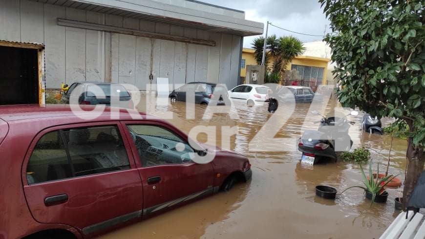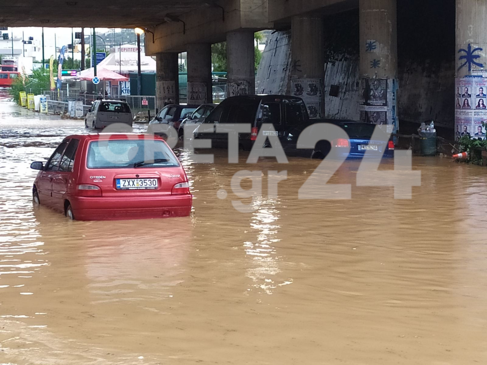 Tο Ηράκλειο βρίσκεται για δεύτερη φορά μέσα σε 24 ώρες αντιμέτωπo με πλημμύρες.