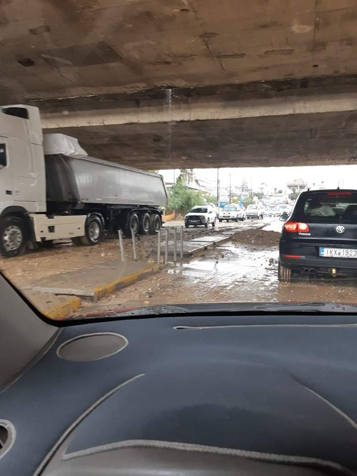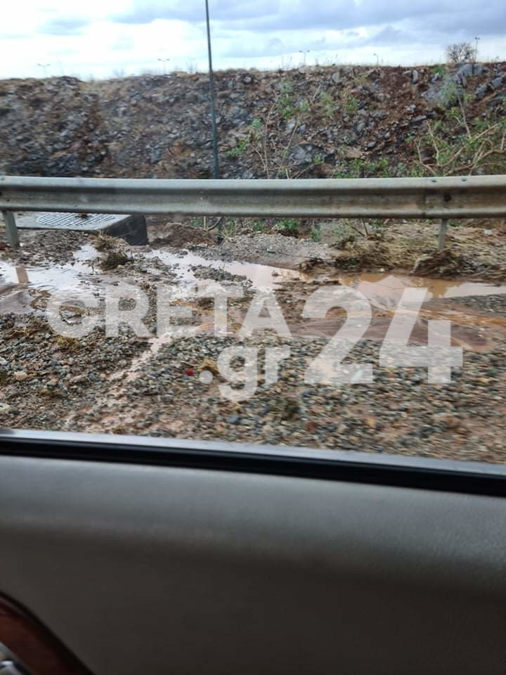 Η έξοδος της εθνικής οδού προς αεροδρόμιο μετατράπηκε σε …χωματόδρομο μετά την νεροποντή: