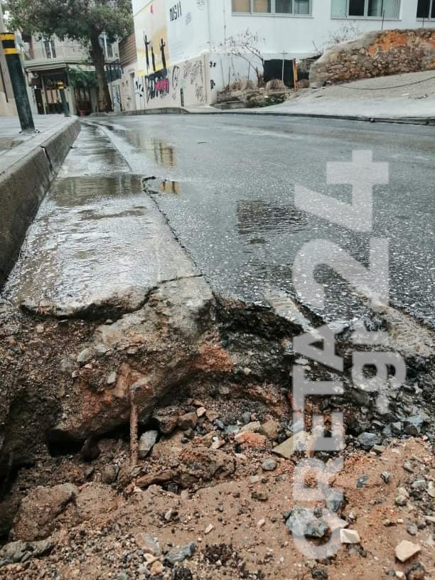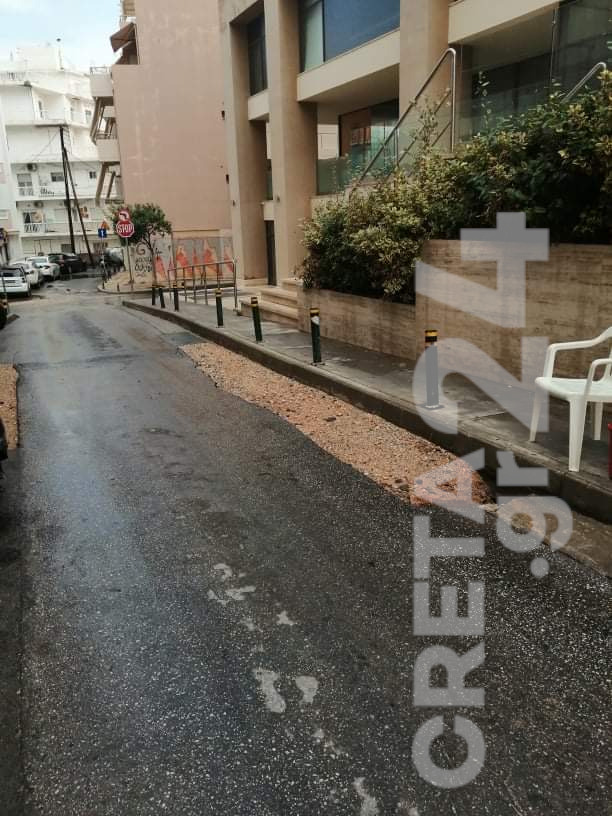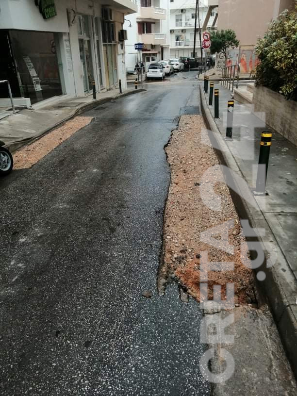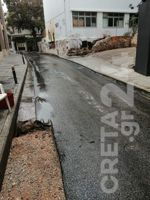 Καθίζηση υπέστη ο δρόμος στην οδό Ευρώπης στο κέντρο του Ηρακλείου.