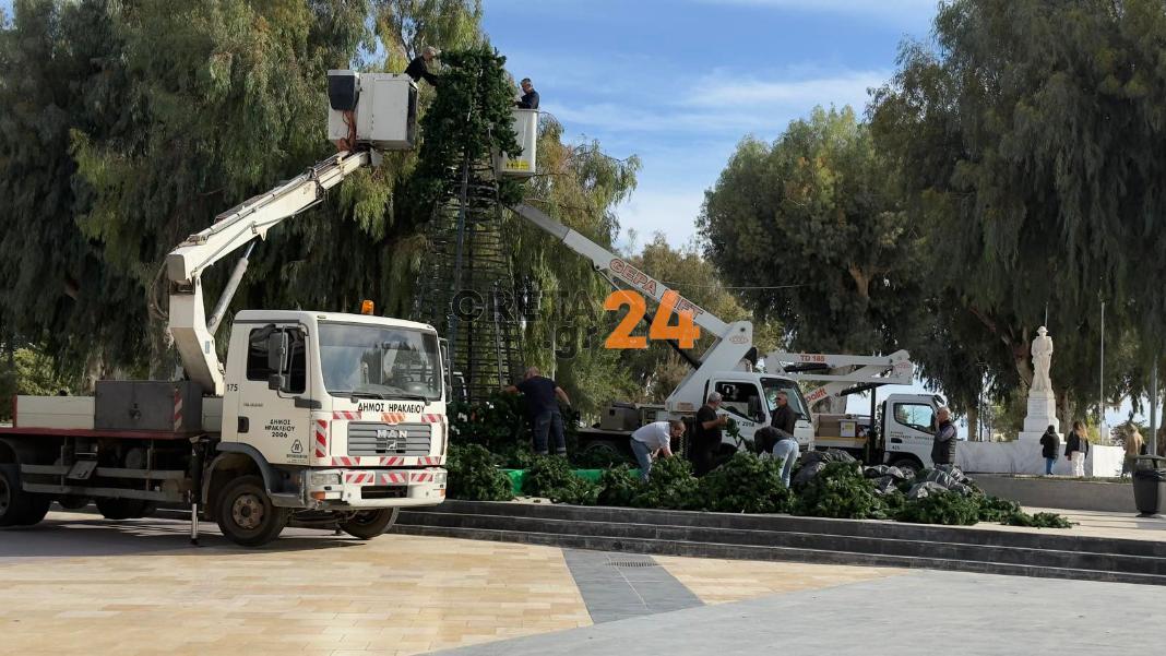 Συνεργεία του Δήμου βρέθηκαν από νωρίς στο κέντρο της πόλης για τον χριστουγεννιάτικο στολισμό, που θα δημιουργήσει εορταστική ατμόσφαιρα στο Ηράκλειο.