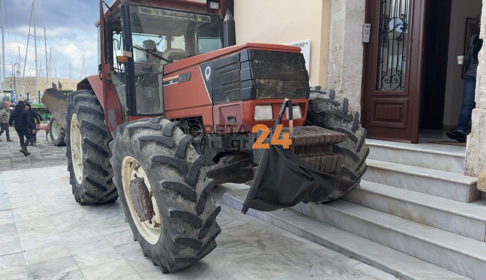 Με τρακτέρ, αγροτικά οχήματα και σημαίες, αγρότες και κτηνοτρόφοι έφτασαν στις εγκαταστάσεις της Αποκεντρωμένης στην παραλιακή λεωφόρο Ηρακλείου, νωρίτερα το πρωί της Τρίτης 9/12, συνεχίζοντας την κινητοποίησή τους.