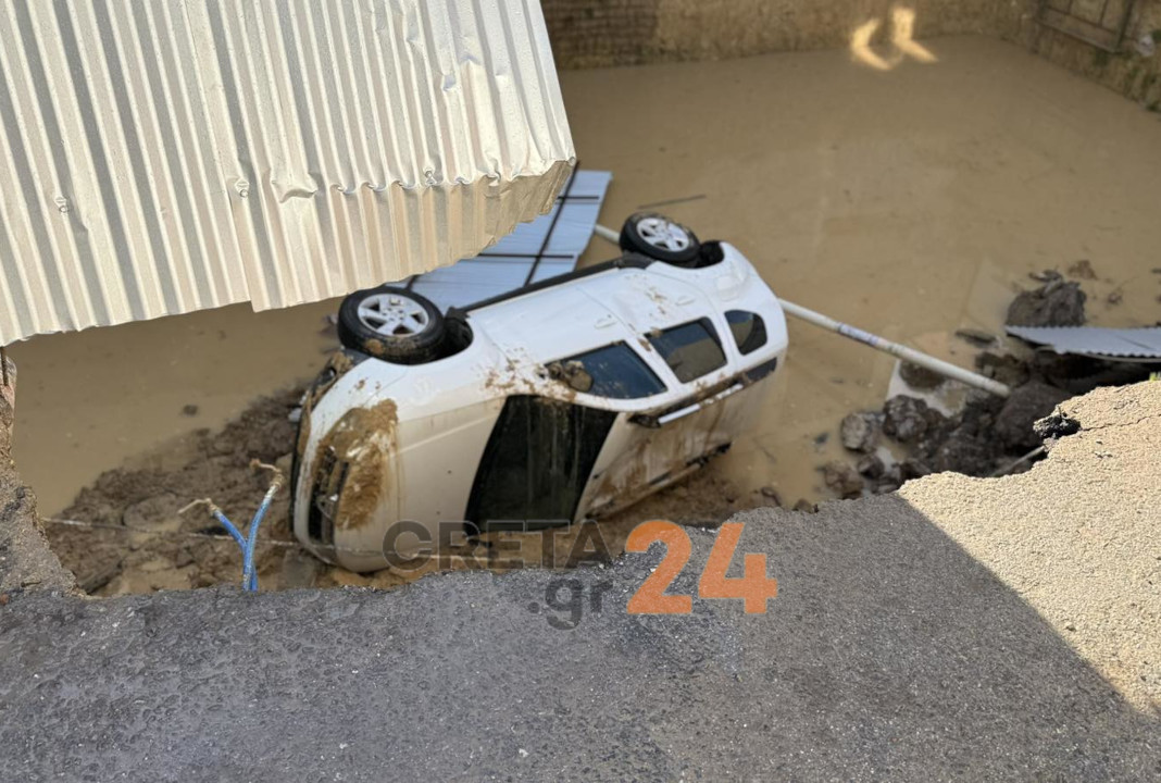 Ένα απίστευτο περιστατικό σημειώθηκε το πρωί της Πέμπτης στο Ηράκλειο, με ένα αυτοκίνητο να «βουλιάζει» στην άσφαλτο.