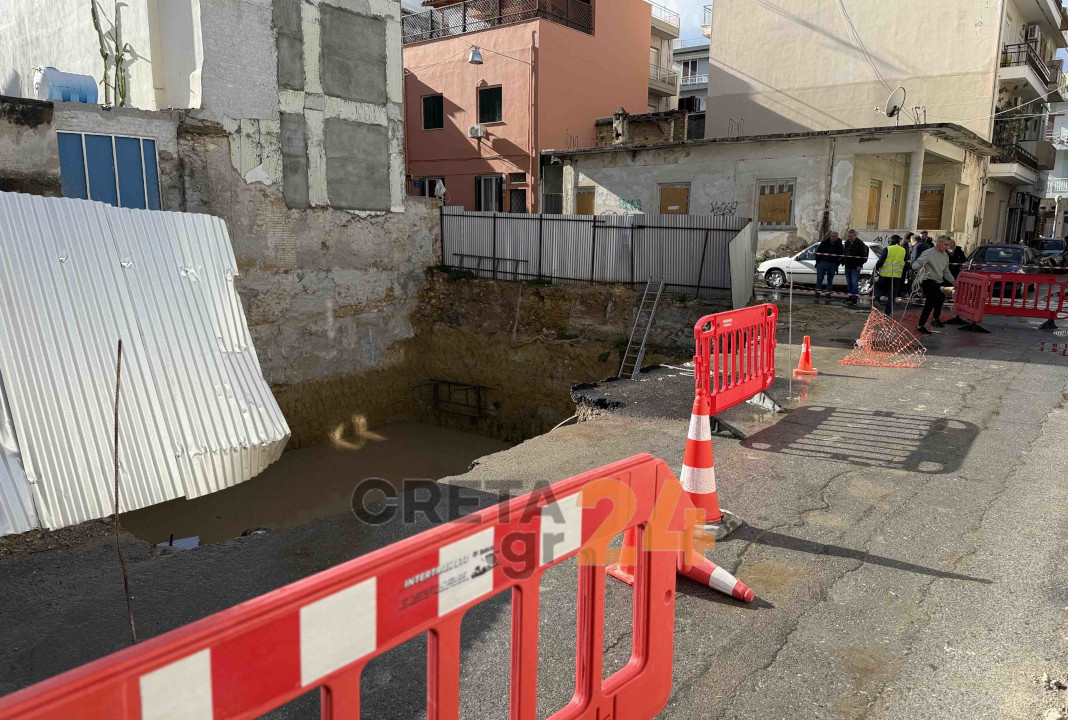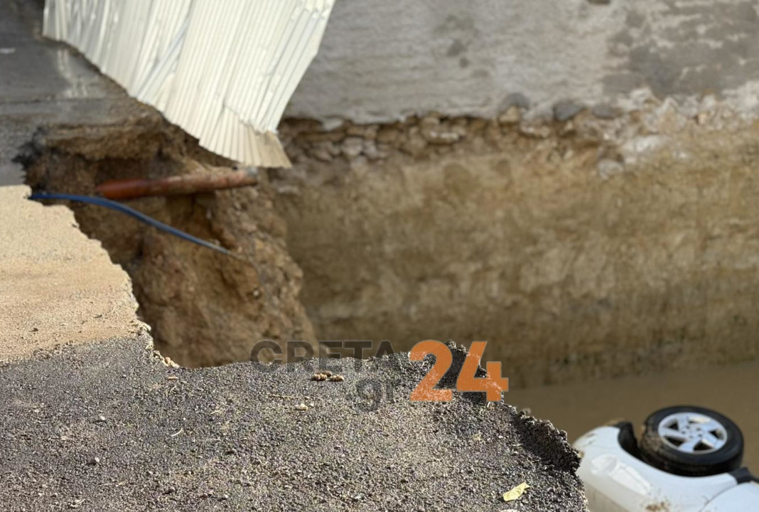 Στο σημείο βρίσκονται συνεργεία του δήμου που έχουν αποκλείσει τον δρόμο, υπό τον φόβο περεταίρω υποχώρησης.