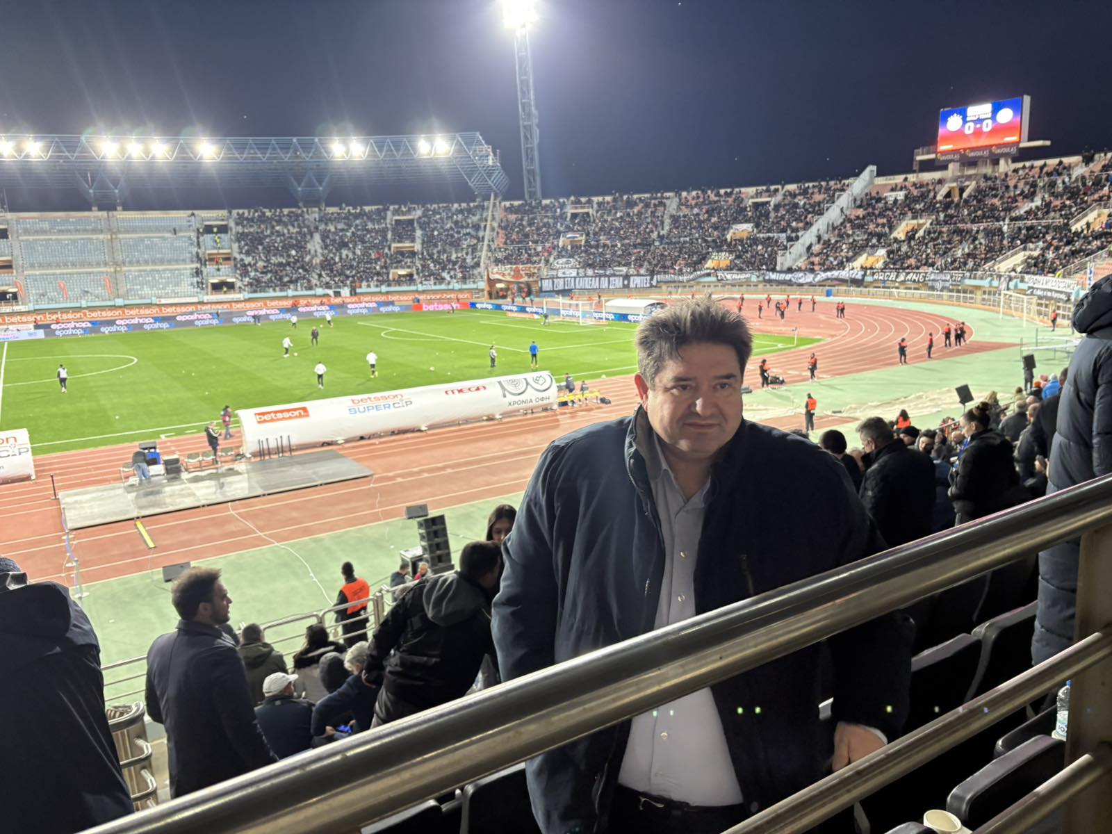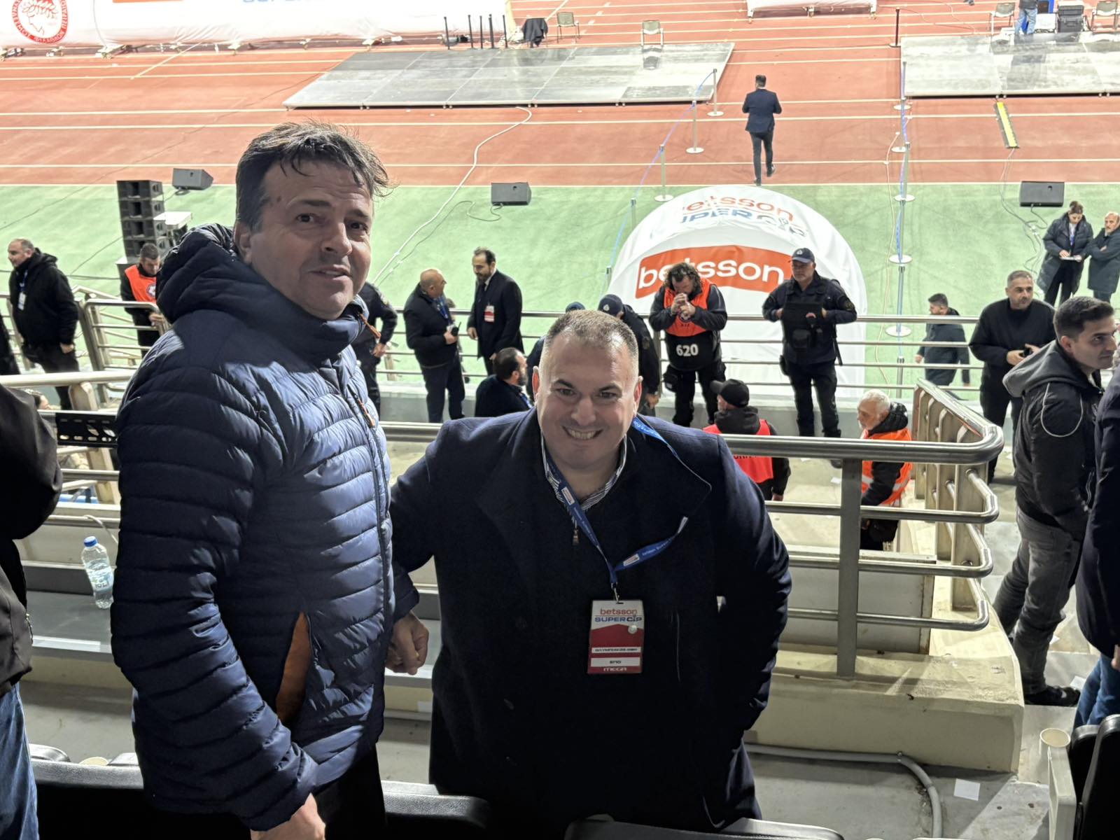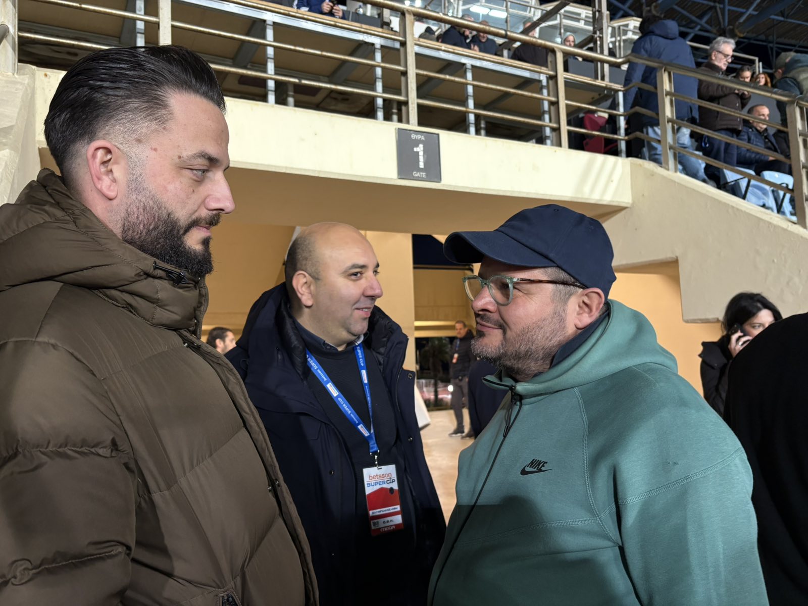 Στα επίσημα του Παγκρητίου Σταδίου ο φακός του Creta24 απαθανάτισε τον Αντιπεριφερειάρχη Νίκο Συριγωνάκη, που πόζαρε με τον Γιώργο – Πλούταρχο Κουτεντάκη.