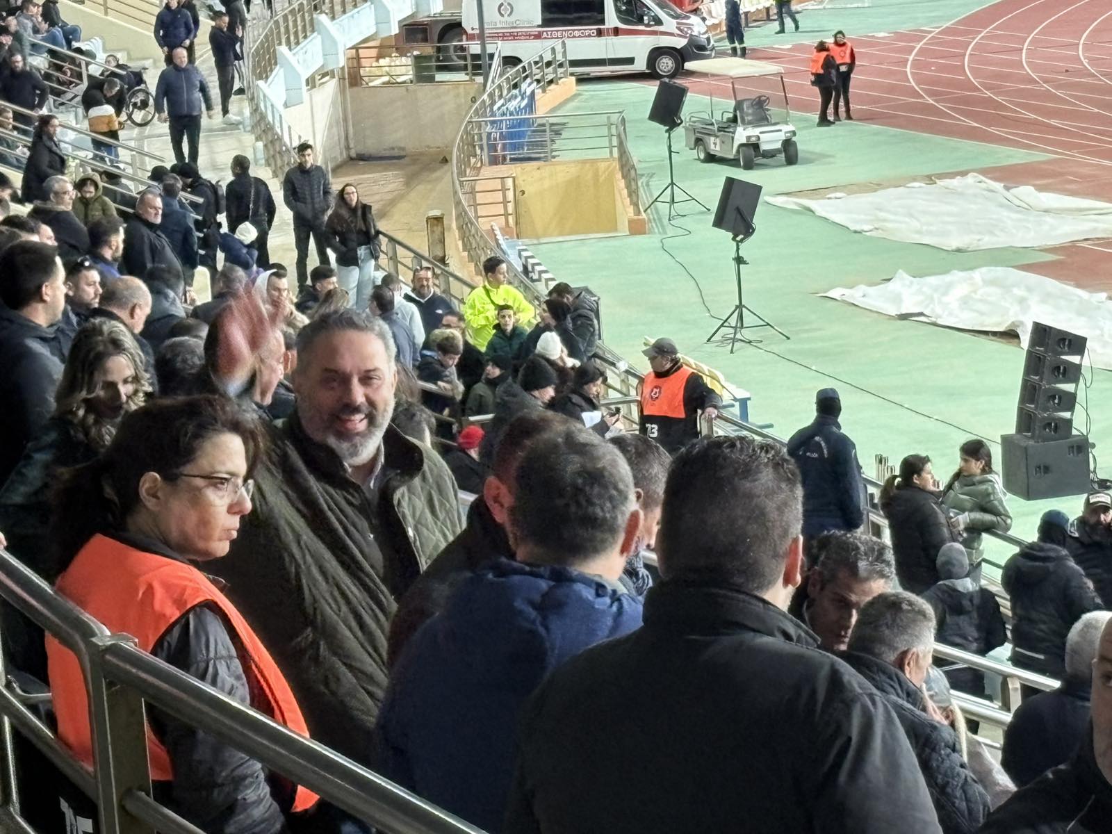 Ο Περιφερειάρχης Σταύρος Αρναουτάκης ήταν εκεί, δίπλα στον Δήμαρχο Ηρακλείου Αλέξη Καλοκαιρινού, μετά του αναπληρωτή προέδρου της ΕΠΟ Νίκου Τζώρτζογλου.