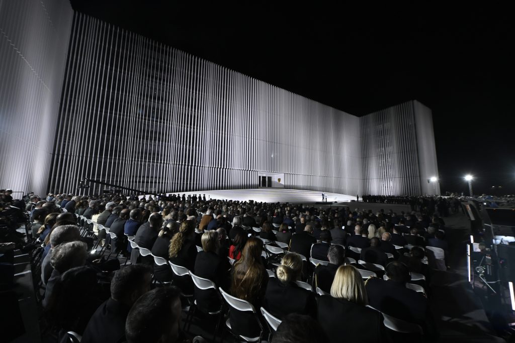 Τόνισε, μεταξύ άλλων, ότι «η διαμόρφωση της εντυπωσιακής αυτής της πρόσοψης φιλτράρει το φως του παρόντος, διατηρώντας τη διαύγεια του παρελθόντος. Την ίδια στιγμή, ωστόσο, αντανακλά το δυναμισμό του μέλλοντος».