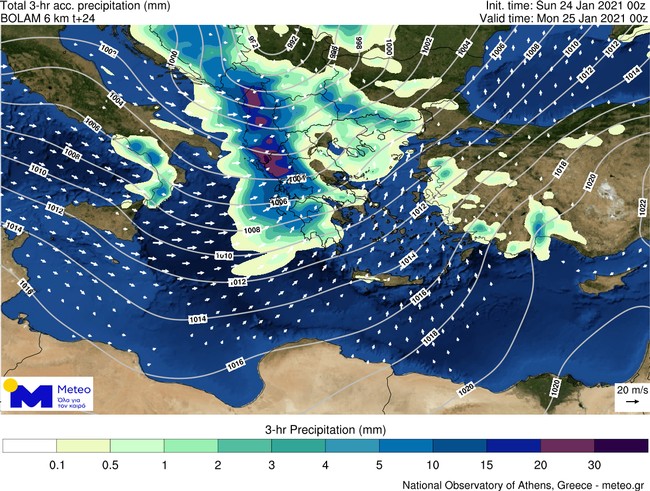 Σύμφωνα με τα προγνωστικά στοιχεία του Εθνικού Αστεροσκοπείου Αθηνών/meteo.gr, νέο μέτωπο κακοκαιρίας με παρόμοια χαρακτηριστικά, θα επηρεάσει μετά το μεσημέρι της Κυριακής 24/01 τη Δυτική Ελλάδα και προοδευτικά έως το πρωί της Δευτέρας 25/01 το σύνολο της χώρας.