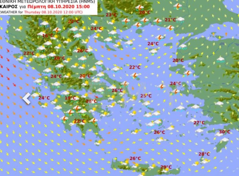 Ο χάρτης της ΕΜΥ για τον καιρό της Πέμπτης: