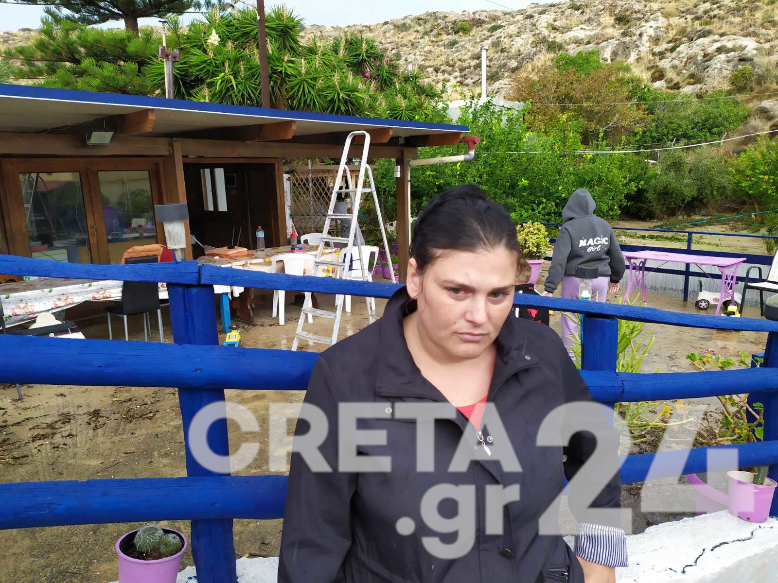 Μιλώντας στο Creta24 η Ειρήνη Τζίκα, δήλωσε πως την ώρα των έντονων καιρικών φαινομένων ανέβηκε στην οροφή της πέργκολας για να σωθεί. «Ανέβηκα στην πέργκολα για να σωθώ, για να έχουν μάνα τα παιδιά μου» ανέφερε χαρακτηριστικά.