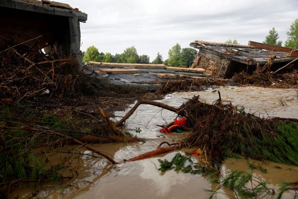 Η τύχη του άνδρα αγνοείται αφού το αυτοκίνητο, στο οποίο επέβαινε μαζί με τον 10χρονο γιό του, παρασύρθηκε από τα ύδατα του ποταμού Αλμπέρτσε που υπερχείλισε.
