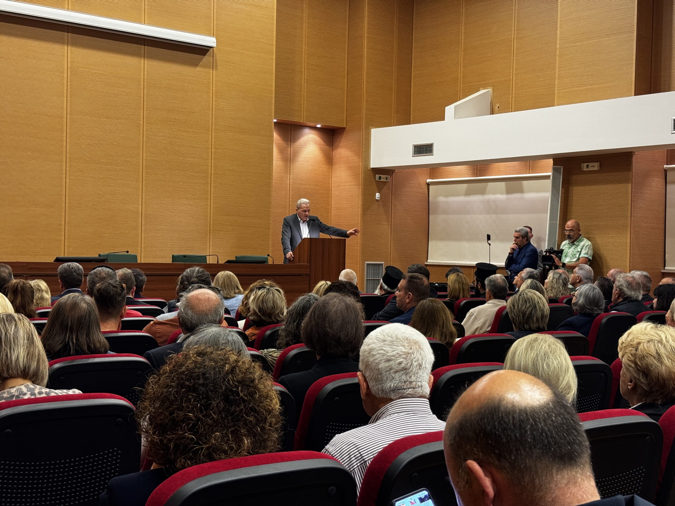Ο Δήμαρχος Ηρακλείου Αλέξης Καλοκαιρινός στην ομιλία του, αφού καλωσόρισε τον Πρόεδρο της Βουλής Νικήτα Κακλαμάνη, τόνισε ότι αποτελεί μεγάλη τιμή για την πόλη η παρουσία του αλλά και η πρωτοβουλία να διοργανωθεί αυτή η έκθεση τεκμηρίων για τη ζωή και το έργο του Δημήτριου Βικέλα.