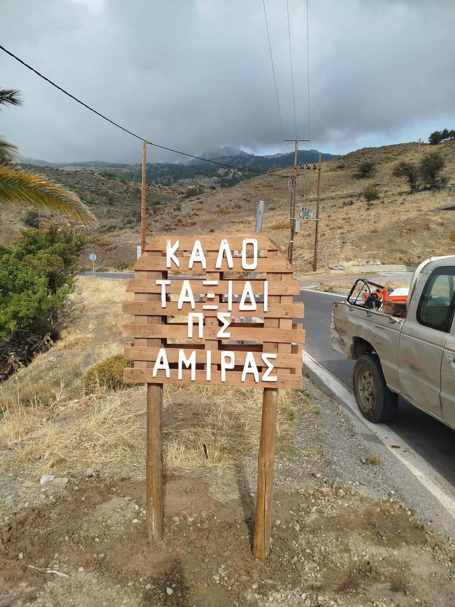 Μια όμορφη και ουσιαστική κίνηση έγινε πρόσφατα στην είσοδο και έξοδο του χωριού Αμιράς, όπου τοποθετήθηκαν δύο καλαίσθητες ξύλινες πινακίδες: μία που καλωσορίζει τους επισκέπτες με το μήνυμα «Καλώς ήλθατε» και μία δεύτερη που τους αποχαιρετά με το «Καλό ταξίδι».