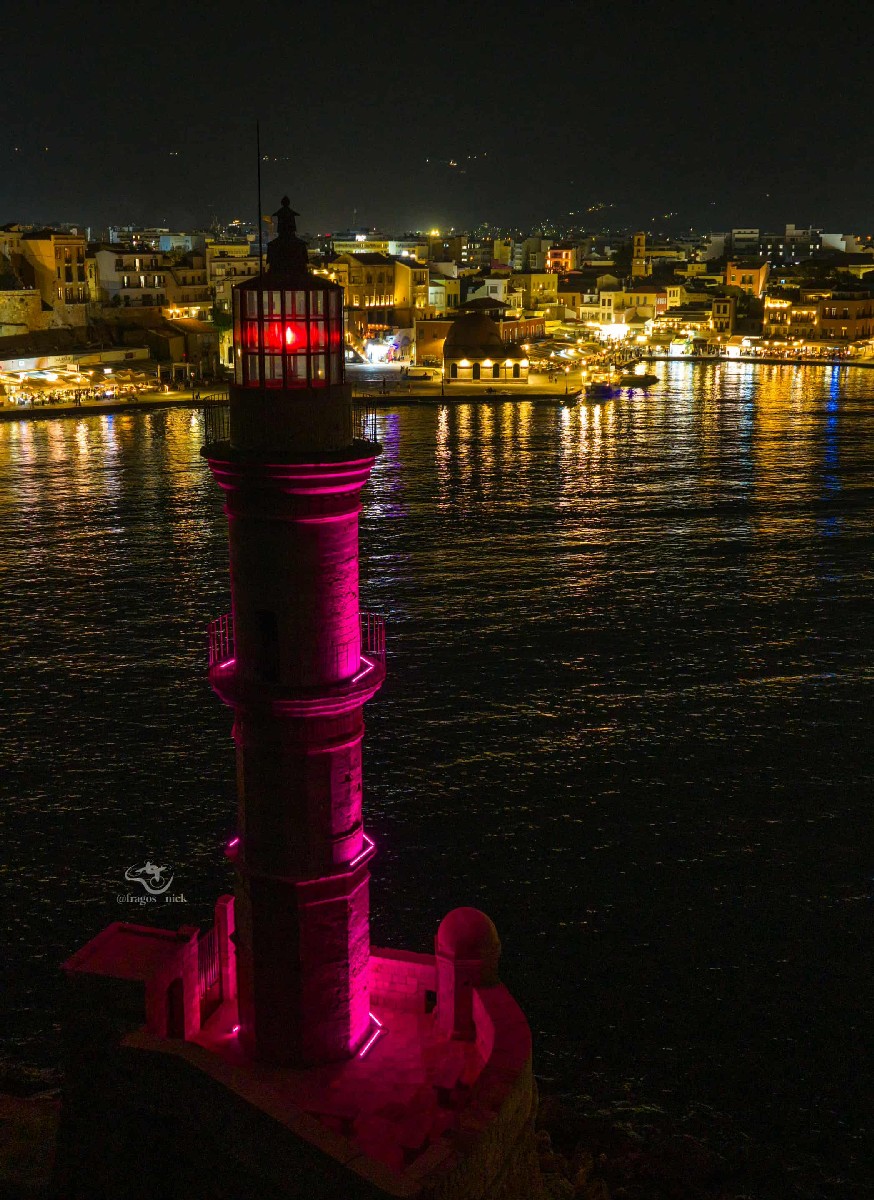 Τέλος, στο πλαίσιο των δράσεων ενημέρωσης και ευαισθητοποίησης, και σε συνεργασία με το Δημοτικό Λιμενικό Ταμείο, ο Φάρος στο ενετικό λιμάνι των Χανίων φωτίστηκε στο ροζ χρώμα, στέλνοντας μήνυμα στήριξης και ευαισθητοποίησης για τον καρκίνο του μαστού.