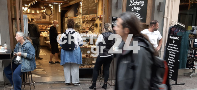 Κάποιοι φούρνοι και καφέ λειτουργούν με take away, όπου μάλιστα πολίτες περιμένουν στην ουρά για να πάρουν τον καφέ τους, με αρκετούς από αυτούς να επιλέγουν να τον απολαύσουν στα τραπεζοκαθίσματα των κλειστών καταστημάτων.