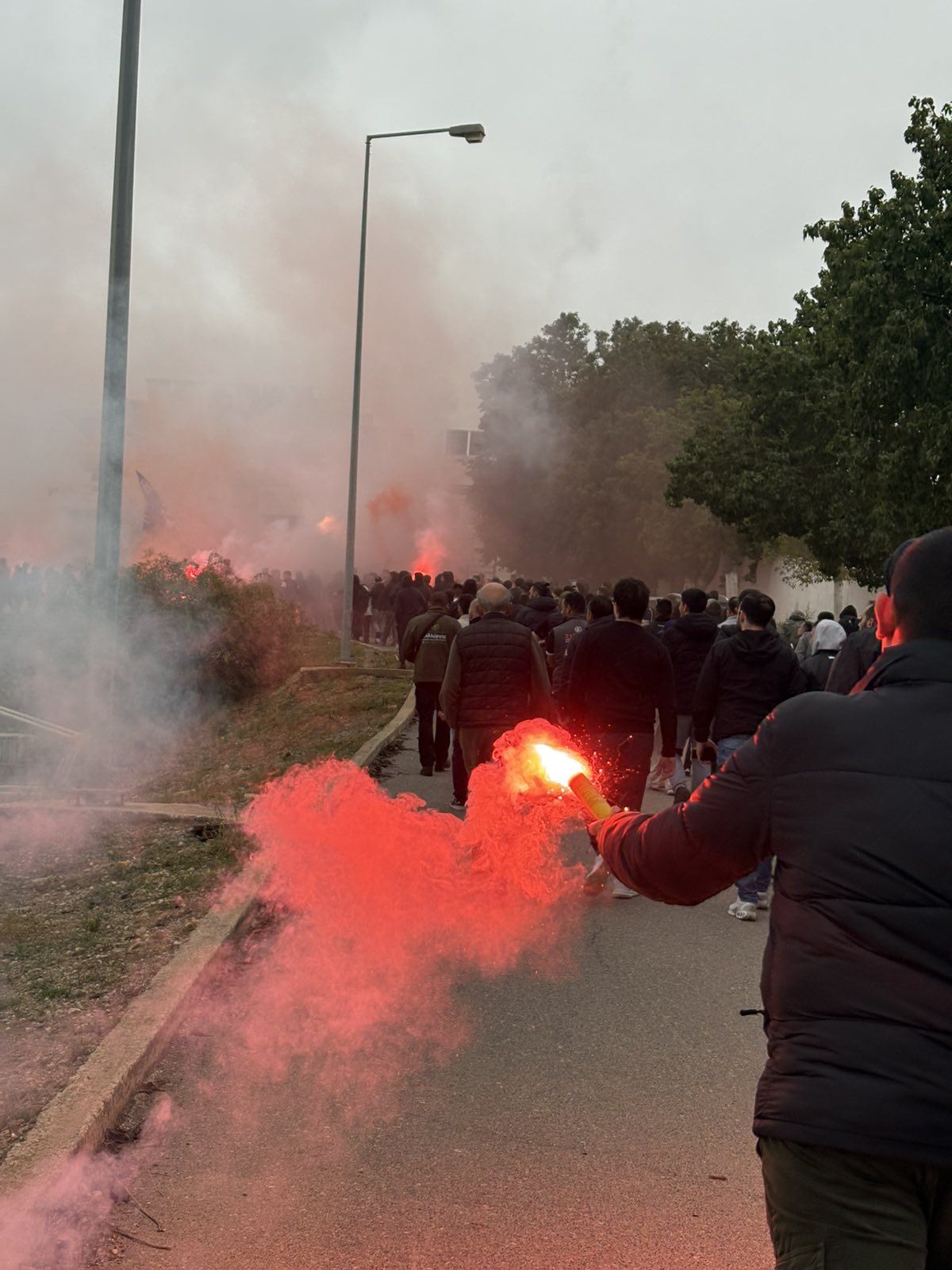 Με συνθήματα, καπνογόνα, αποθέωσαν τους ποδοσφαιριστές και τον Χρήστο Κόντη, ζητώντας τους να μπουν στο γήπεδο και να παλέψουν μέχρι τέλους για την κατάκτηση του Κυπέλλου Ελλάδας.