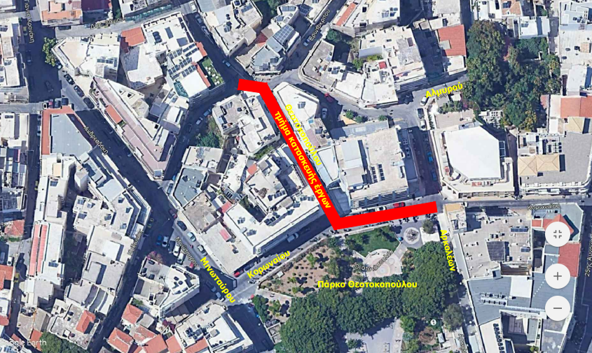 Επίσης από την Δευτέρα 27 Μαΐου 2019 και έως την ολοκλήρωση των εργασιών, τμήματα των οδών Θεοτοκοπούλου και Κορωναίου θα παραμείνουν κλειστά κατά διαστήματα, λόγω κατασκευής αγωγού ομβρίων υδάτων στην οδό Θεοτοκοπούλου.