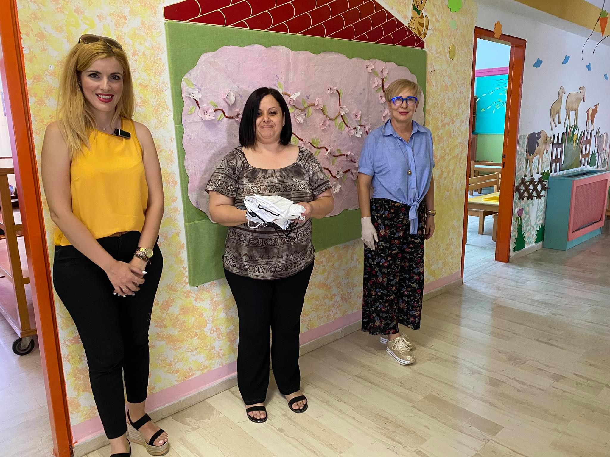 Ταυτόχρονα, με την ευγενική δωρεά και εθελοντική προσφορά του Συλλόγου Γυναικών Μαλβαζία και της Προέδρου Ευγενίας Μαζαράκη παραδόθηκαν μάσκες για τις ανάγκες των παιδικών και βρεφονηπιακών σταθμών.