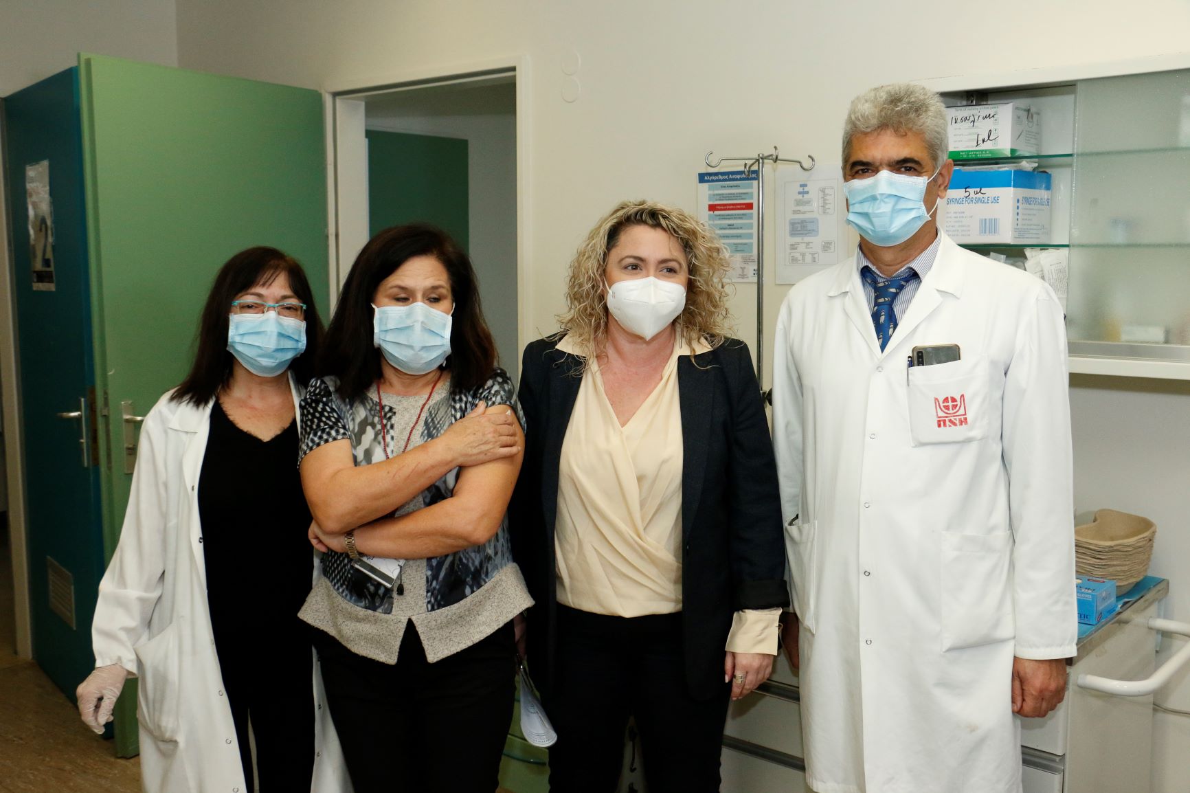 Στο Νοσοκομείο Χανίων, οι πρώτοι υγειονομικοί που εμβολιάστηκαν ήταν η λοιμωξιολόγος Ειρήνη Λαγουδάκη, η νοσηλεύτρια Ευφροσύνη Τσουράκη, και η ιατρός Αγγελική Δαμιανάκη.