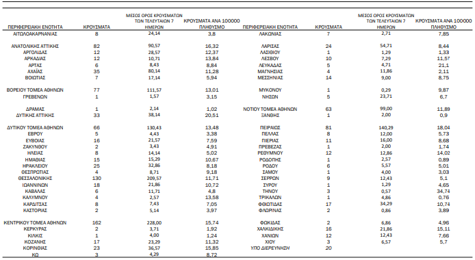 Η κατανομή των 1.133 νέων εγχώριων κρουσμάτων ανά Περιφερειακή Ενότητα παρουσιάζεται στον κατωτέρω πίνακα: