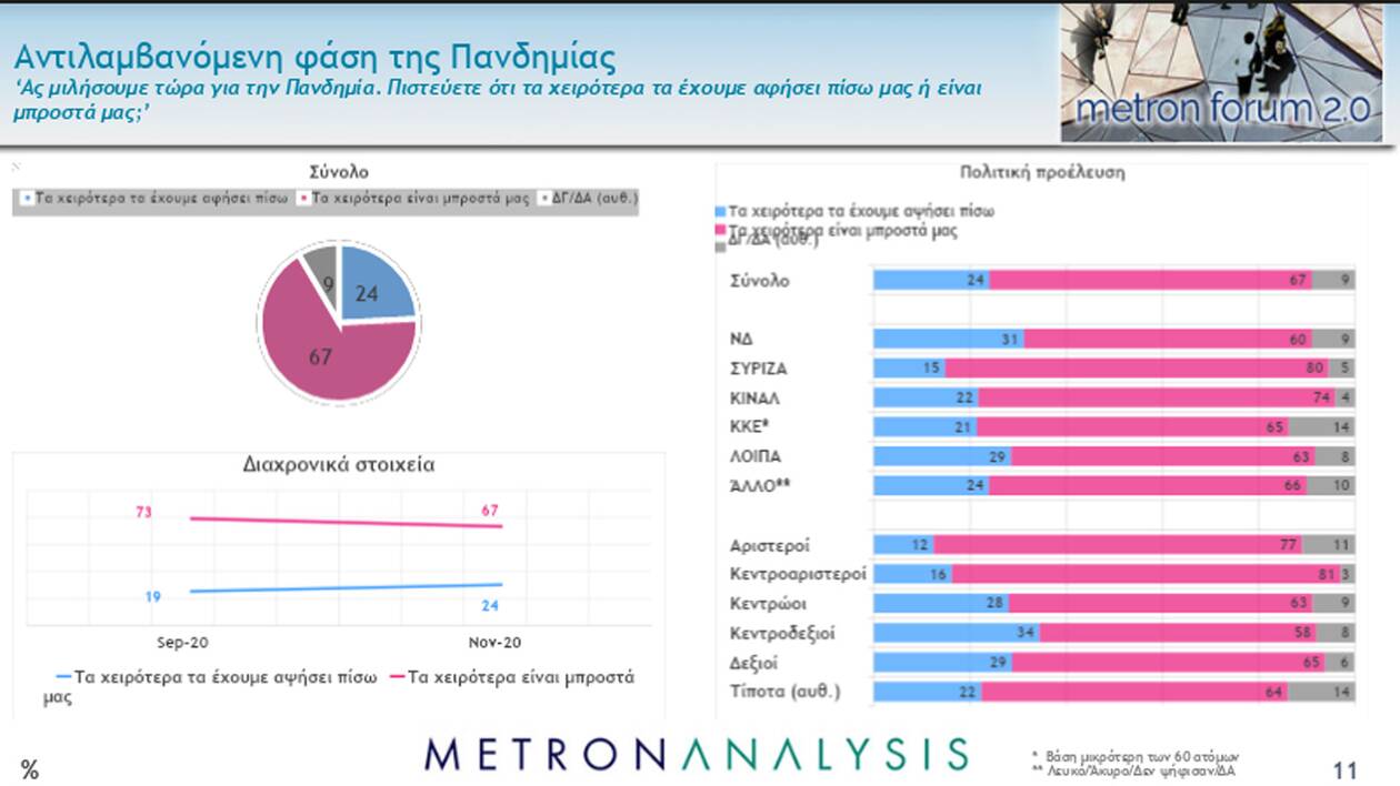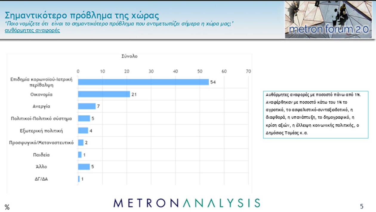 Με το μείζον ζήτημα του κορωνοϊού ασχολείται, εξάλλου, και η δημοσκόπηση της Metron Analysis.