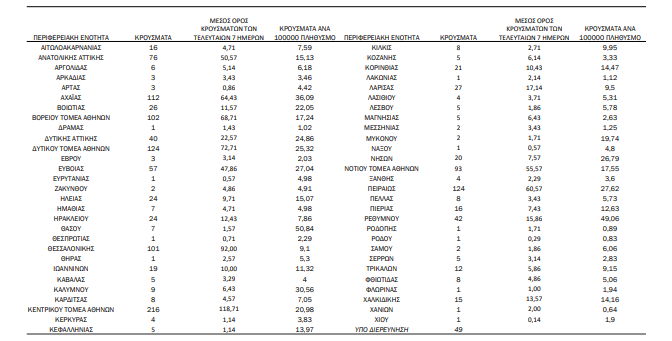 Από αυτά, 71 εντοπίστηκαν στην Κρήτη. Ειδικότερα, 24 στο Ηράκλειο, 4 στο Λασίθι, 42 στο Ρέθυμνο και 1 στα Χανιά.