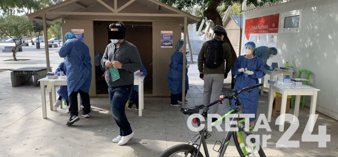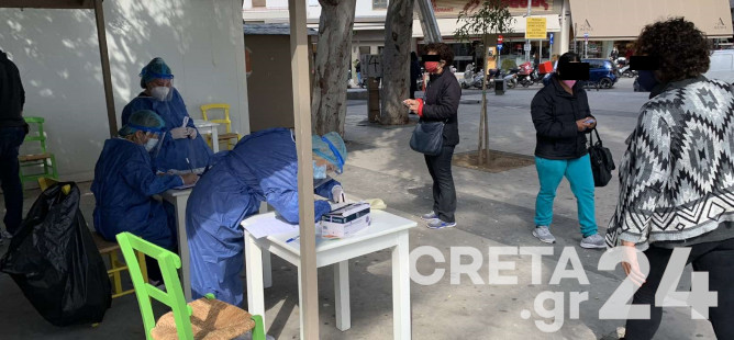 Αρκετοί είναι οι Ηρακλειώτες που από νωρίς το πρωί βρέθηκαν στην …ουρά στην πλατεία Ελευθερίας για να κάνουν ένα rapid test.