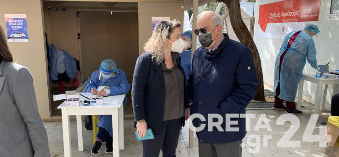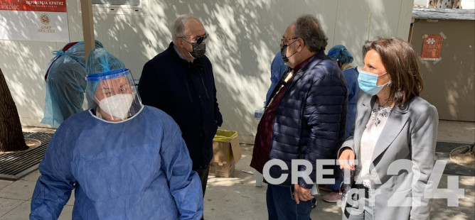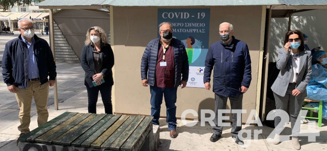 Στην πλατεία Ελευθερίας βρέθηκαν το πρωί ο δήμαρχος Ηρακλείου Βασίλης Λαμπρινος, η αντιδήμαρχος Ρένα Παπαδάκη, η διοικήτρια της Υγειονομικής Περιφέρειας Κρήτης Λένα Μπορμπουδάκη και ο αντιπεριφερειάρχης Υγείας Λάμπρος Βαμβακάς που με τη στήριξη τους κατέστη δυνατό να υπάρξει η δυνατότητα για ράπιντ τεστ σε μόνιμη βάση.