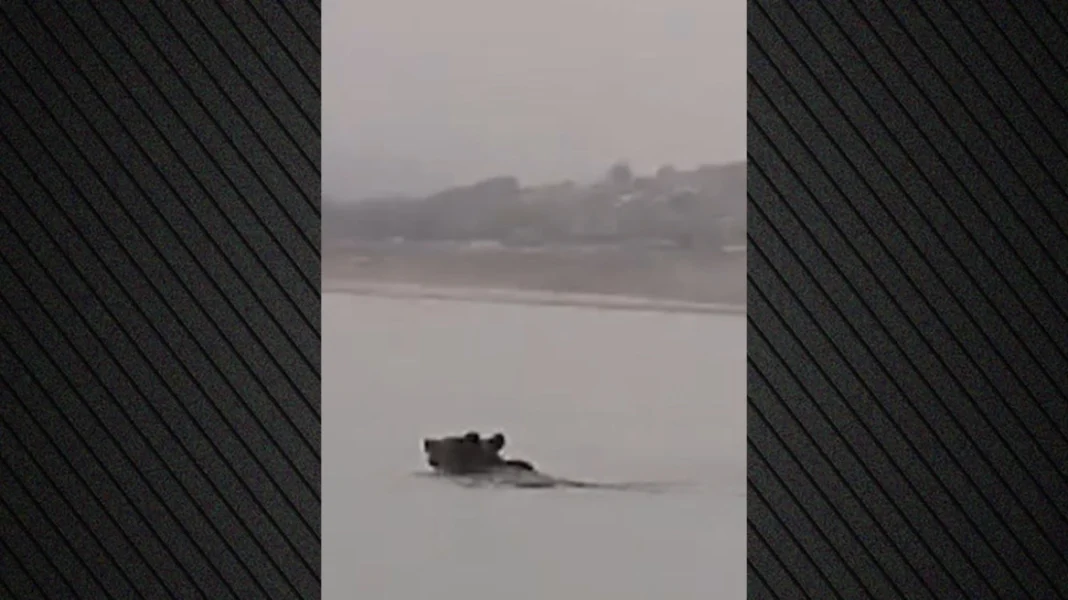 Η αρκούδα, αφού ολοκλήρωσε επιτυχώς τη διαδρομή της, βγήκε στη στεριά και χάθηκε στο δάσος.