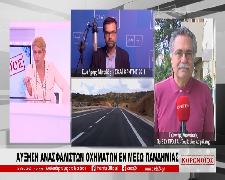 Μιλώντας στον Περιφερειακό Τηλεοπτικό Σταθμό CRETA ο σύμβουλος ασφάλισης Γιάννης Λιονάκης, σημείωσε πως «παρέχονται δυνατότητες σε οικονομικό επίπεδο για την ασφάλιση των οχημάτων. Λόγω των συνθηκών, μπορεί κάποιος να ασφαλίσει το όχημά του και με ηλεκτρονικό τρόπο».