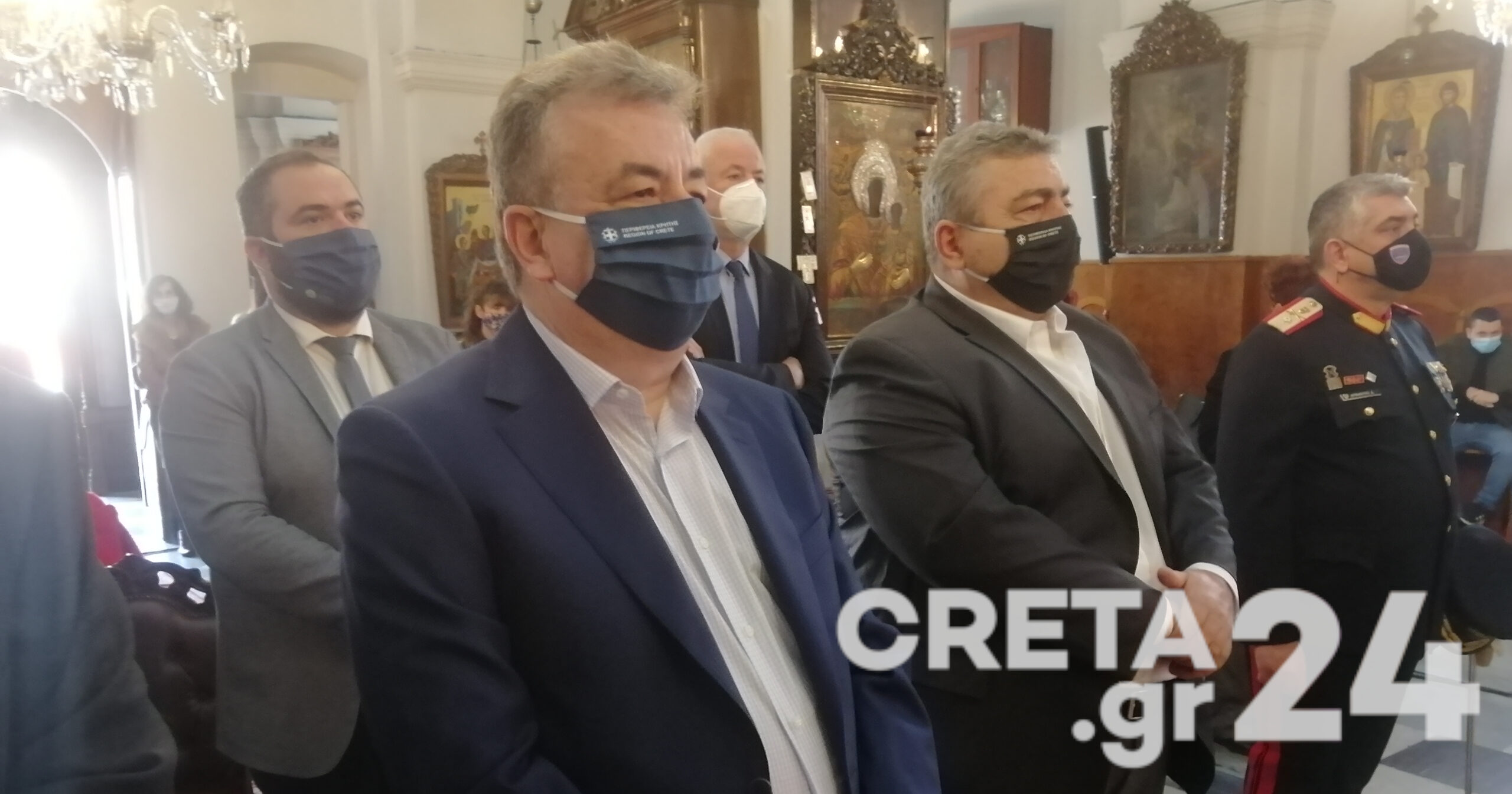 Στην λειτουργία παρευρέθηκαν μεταξύ άλλων ο Περιφερειάρχης Κρήτης, Σταύρος Αρναουτάκης και ο Αντιπεριφερειάρχης Χανίων, Νίκος Καλογερής.