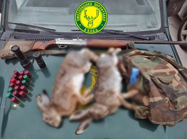 Μετά από πολύωρη παρακολούθηση, οι θηροφύλακες κατάφεραν να προσεγγίσουν και να συλλάβουν ένα άτομο, στην κατοχή του οποίου βρέθηκαν ένα κυνηγετικό όπλο, φυσίγγια, 2 φακοί καθώς και 2 λαγοί σκοτωμένοι.