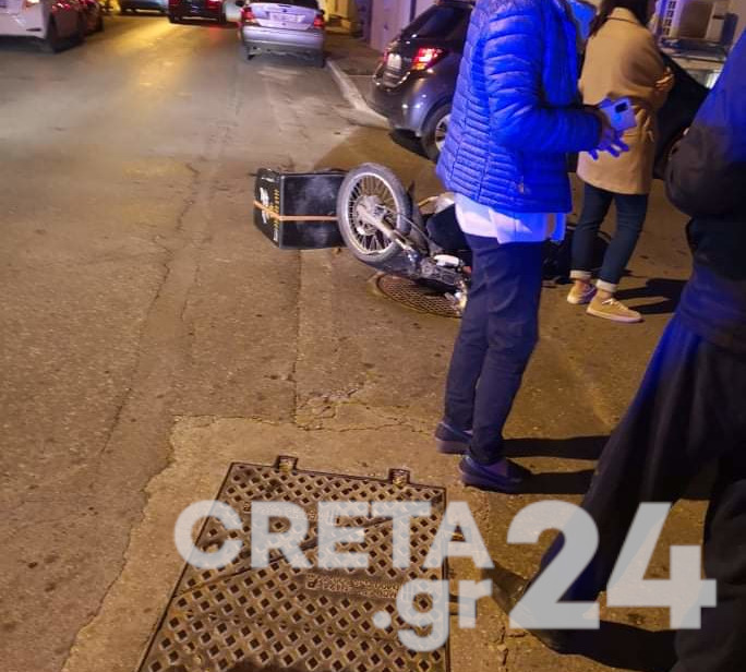 Ένα αυτοκίνητο παραβίασε το STOP στην διασταύρωση των οδών Ηγουμένου Γαβριήλ και Κ. Μάνου, στην περιοχή του Αγίου Ιωάννη στα Χανιά, με αποτέλεσμα να παρασύρει διερχόμενο διανομέα.