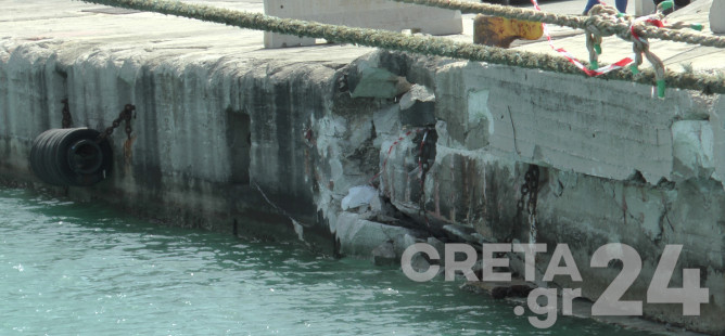 Μεγάλες ζημιές υπέστη ο προβλήτας στο λιμάνι της Σούδας, όπου το πρωί προσέκρουσε φορτηγό πλοίο.