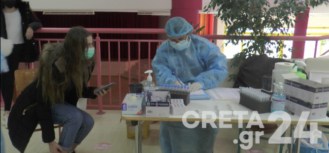 Στο δημοτικό σχολείο Ανωγείων βρίσκονται από νωρίς το πρωί κινητές μονάδες του ΕΟΔΥ για την πραγματοποίηση rapid test στους κατοίκους του δήμου.