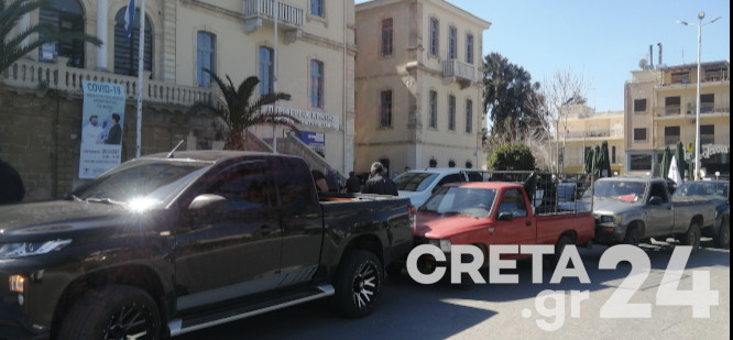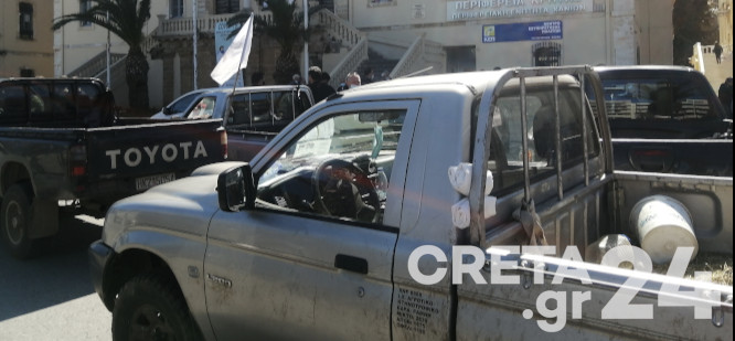 Στην κινητοποίηση συμμετείχαν αγρότες από τους Αγροτικούς Συλλόγους Χανίων, Βάμου, Βουκολιών, Έλους, Κρυονερίδας, Κολυμβαρίου κ.α.