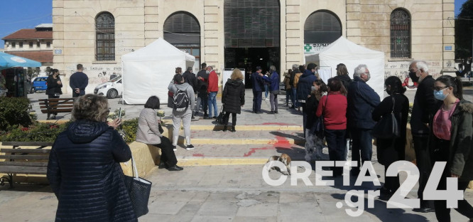 Η διαδικασία συνεχίζεται με τον κόσμο που στέκεται στην «ουρά», κρατώντας πάντοτε αποστάσεις και τηρώντας τα μέτρα, να αυξάνεται όλο και περισσότερο.