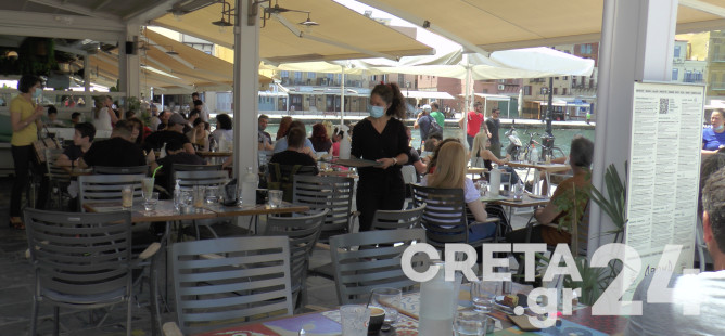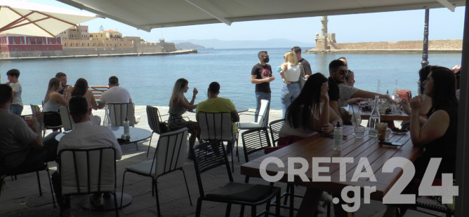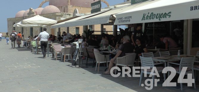 Δεν πρόλαβαν να ανοίξουν, γέμισαν οι εξωτερικοί χώροι των καφέ στο ενετικό λιμάνι των Χανίων.
