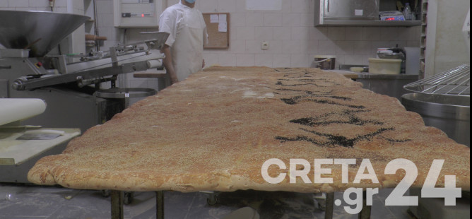 Μια παράδοση ετών τήρησε και φέτος ένας αρτοποιός στην Κρήτη. Ο κ. Δημητρουλάκης, που διατηρεί φούρνο στην Νέα Χώρα Χανίων εδώ και 25 χρόνια παρασκευάζει, ανήμερα της Καθαράς Δευτέρας, μια λαγάνα γίγας.
