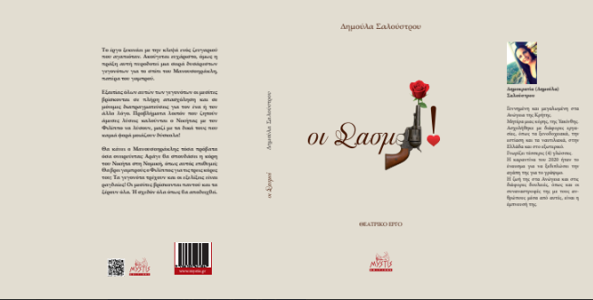 Κυκλοφόρησε από τις εκδόσεις “Μύστις” το νέο βιβλίο της Δημοκρατίας Σαλούστρου με τίτλο “Σασμοί”. Πρόκειται για το τρίτο θεατρικό έργο σε κρητική διάλεκτο από την ίδια συγγραφέα.