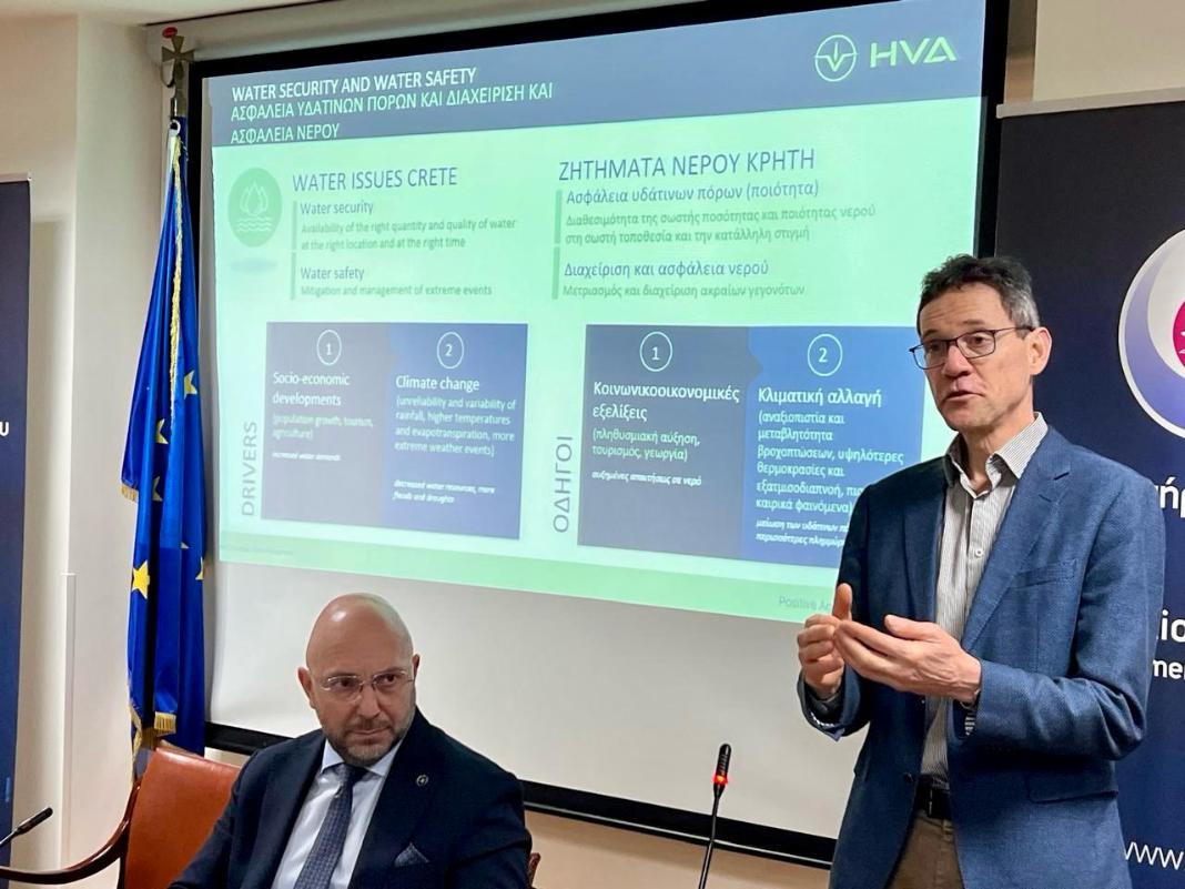 «Η διαχείριση των υδάτων της Κρήτης αποτελεί ένα κρίσιμο ζήτημα που μας απασχολεί εδώ και χρόνια. Από την περίοδο που βρισκόμουν στο τιμόνι του Υπουργείου Αγροτικής Ανάπτυξης, είχα την ευκαιρία να συνεργαστώ με την ολλανδική εταιρεία HVA, με αφορμή τη διαχείριση της κακοκαιρίας Daniel. Με τη συμβολή της Περιφέρειας και των Δήμων, η πρωτοβουλία αυτή επεκτάθηκε και στην Κρήτη, και σήμερα βρισκόμαστε σε ένα ιδιαίτερα ενδιαφέρον στάδιο, καθώς το master plan για τη διαχείριση των υδάτων του νησιού εισέρχεται στην τελική φάση εκπόνησής του.